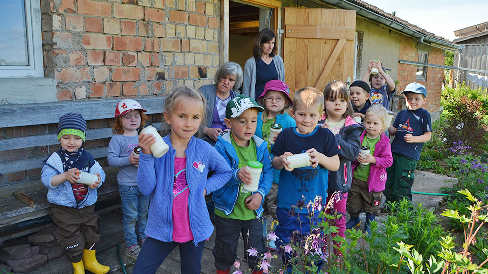 Der Kontakt zu Tieren und das natürliche Erleben prägt Kinder für Ihr Leben. Einmal mitzuerleben, wie die reife Kartoffel aus der Erde kommt oder einen saftigen Apfel direkt vom Baum zu pflücken macht Kinder sensibel für gute und gesunde Ernährung, aber auch für Umweltschutz und nachhaltige Erzeugung. Unsere Bauernhoftiere in ihrer natürlichen Umgebung zu erleben nimmt die Angst vor Fremdem. Außerdem lernen die Kinder Rücksicht zu nehmen auf die Bedürfnisse anderer Lebewesen. All das zu vermitteln oder zumindest anzustoßen, anhand unserer Tiere und der Landwirtschaft ist uns eine große Freude.